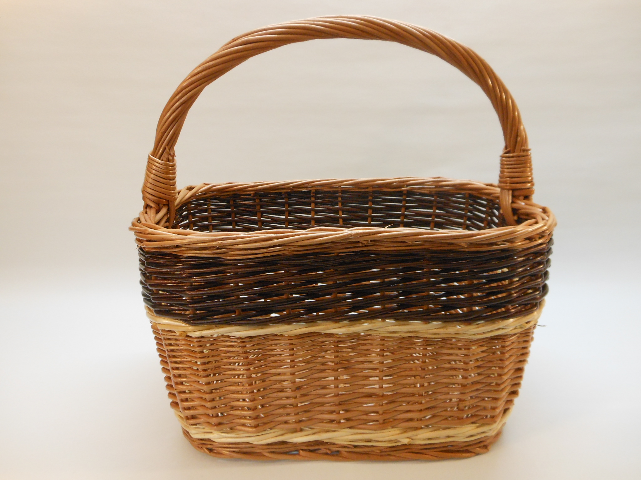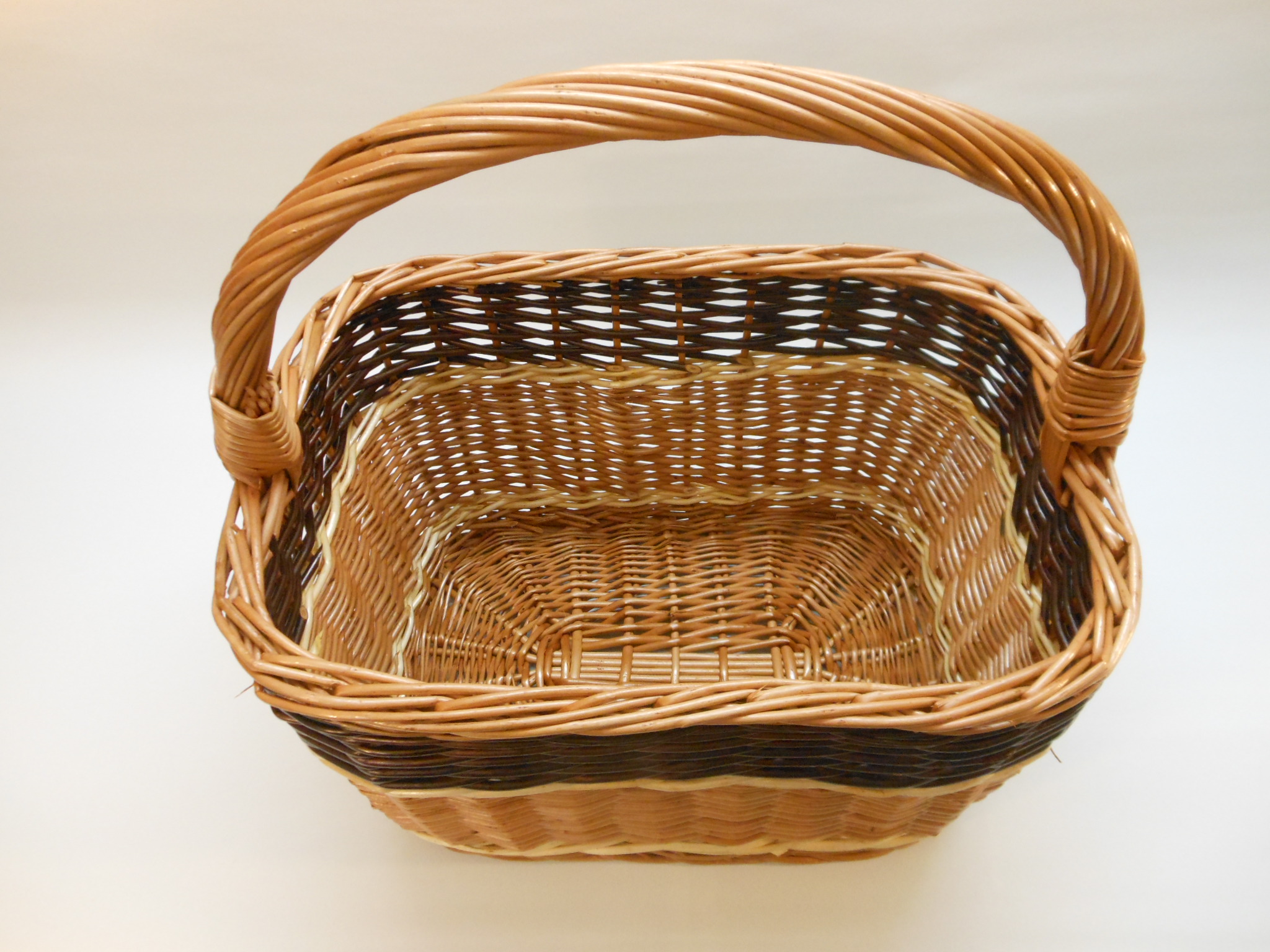 Schöner Einkaufskorb, rechteckig, zum größten Teil aus gesottener Weide.