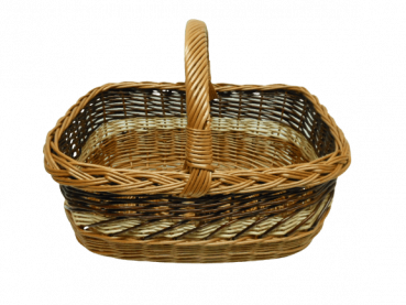 Der Korb ist rechteckig und der Henkel verläuft quer über den Korb.
