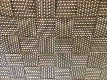 Das Material ist um ein Metallgestell geflochten.