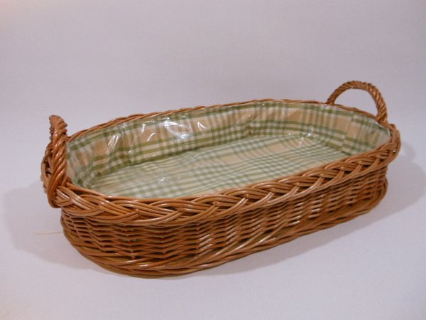 Das Tablett, aus gesottener Vollweide, ist dicht geflochten und verfügt